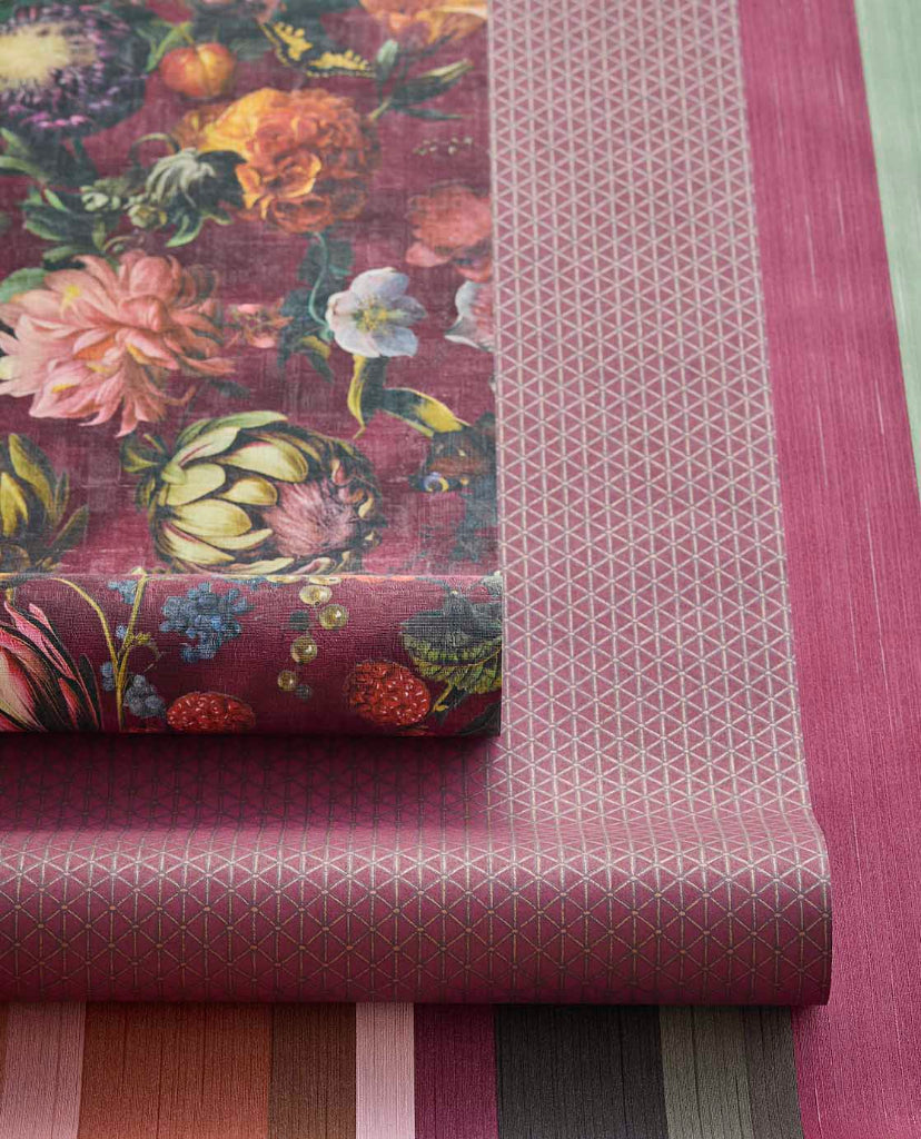 Magnifique's 'Flourish' wallpaper draws inspiration from Jan Davidsz de Heem's masterwork at the Mauritshuis Museum, translating the Dutch Golden Age's botanical splendour into contemporary interior design. This sophisticated wallcovering celebrates the intricate beauty of nature through meticulously rendered floral compositions, capturing the joyful abundance and rich chromatic depth characteristic of classical still-life painting. There's even a nod to our famous South African Protea in this spectacular design. It's perfect for creating a gallery-quality focal point that elevates any room with timeless elegance and artistic refinement. This glorious textured wallpaper comes in 7 colours and is easy-care with it's washable vinyl surface and installation is easy with it's paste-the-wall quality.